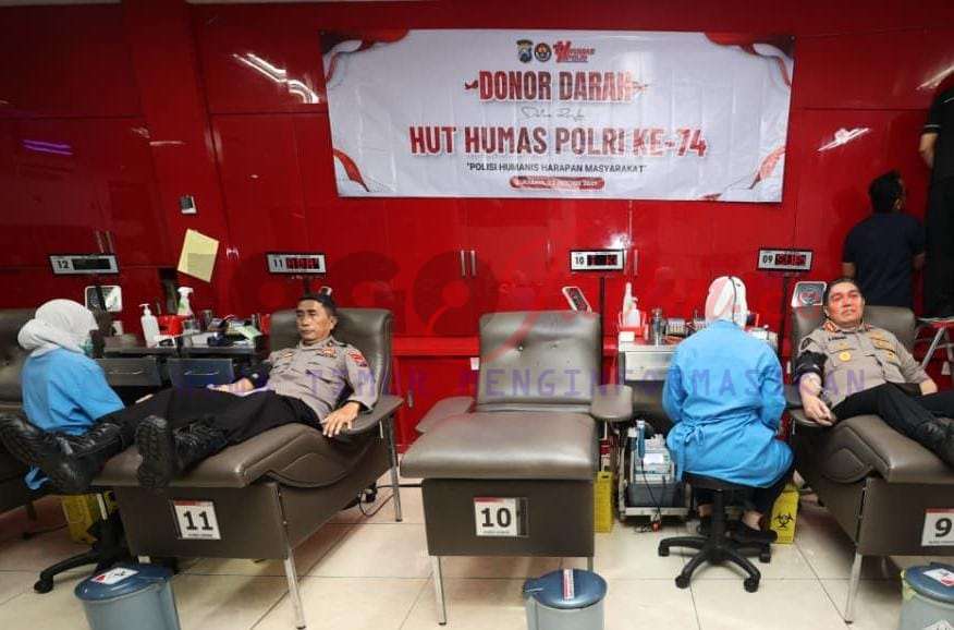 “Momentum di hari jadi Humas Polri ke-74 ini kami jadikan ajang untuk berbagi dan membantu sesama,” ungkap Kombes Abast usai mendonorkan darahnya.