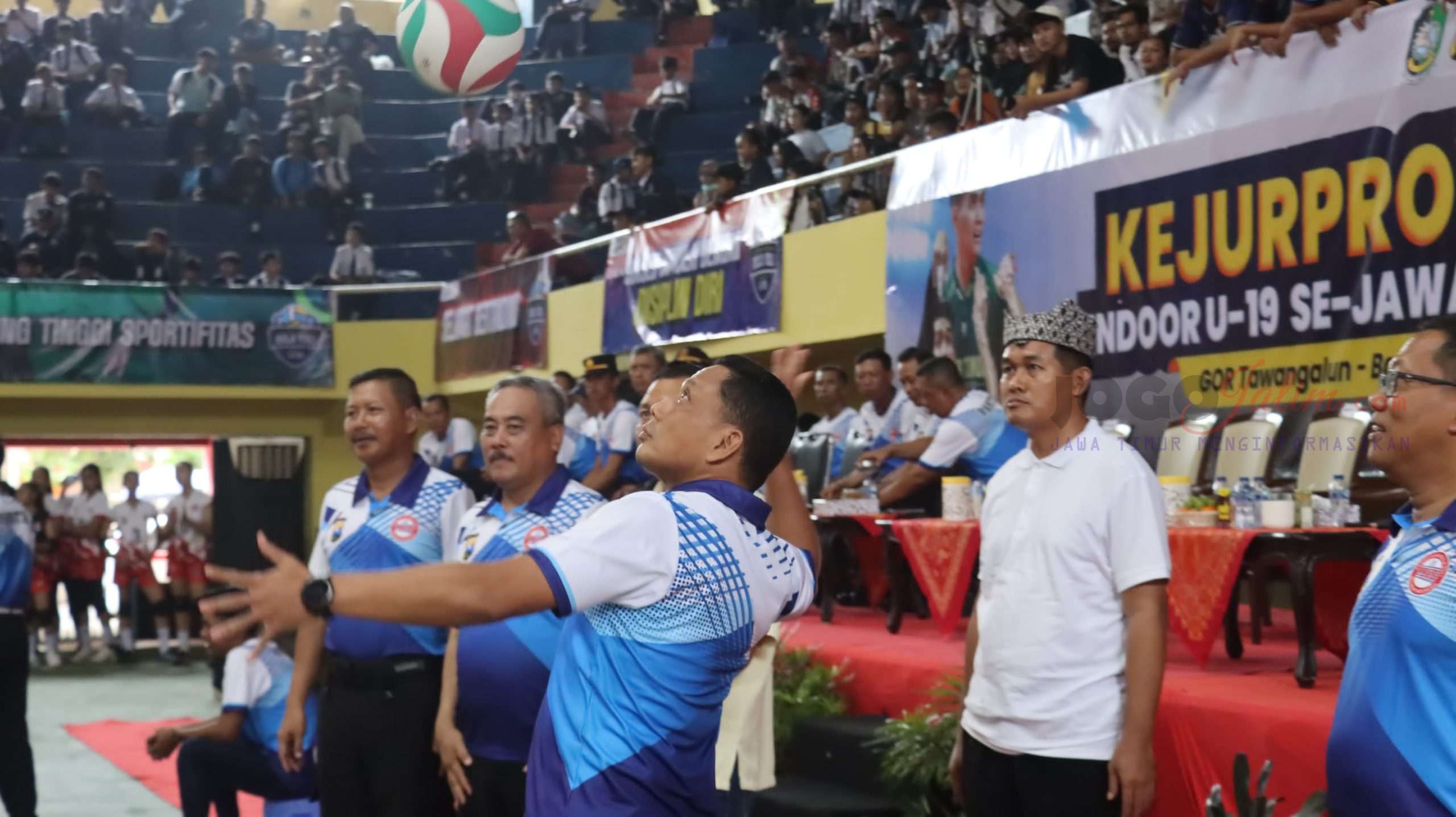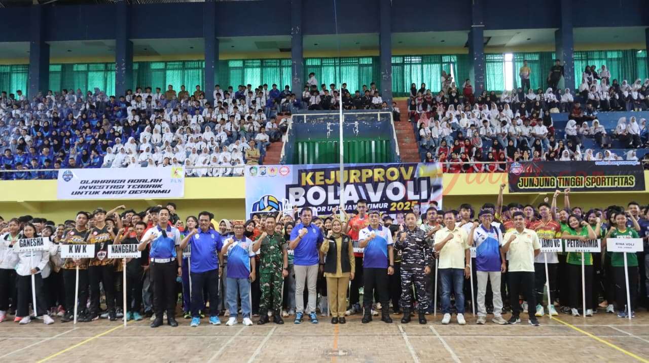 BANYUWANGI, Jogojatim.com   – Kejuaraan Provinsi (Kejurprov) Bola Voli U-19 Jawa Timur resmi dibuka di GOR Tawang Alun Banyuwangi, Senin (27/10/2025).