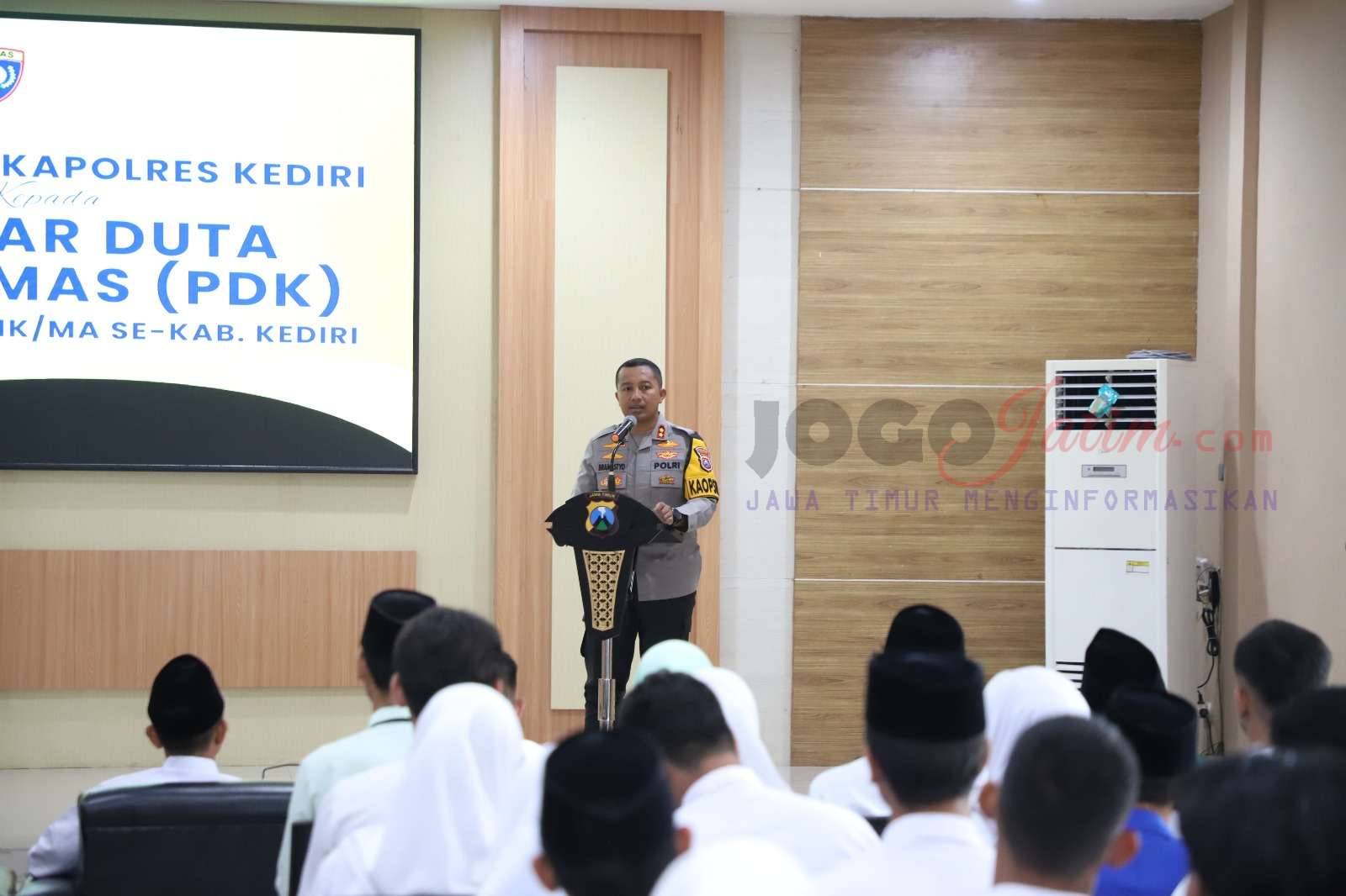 KEDIRI, Jogojatim.com – Para pelajar yang terpilih menjadi Pelajar Duta Kamtibmas (PDK) mengikuti pembekalan yang digelar Polres Kediri di Aula Wicaksana Laghawa Mapolres Kediri, Senin (27/10/2025).