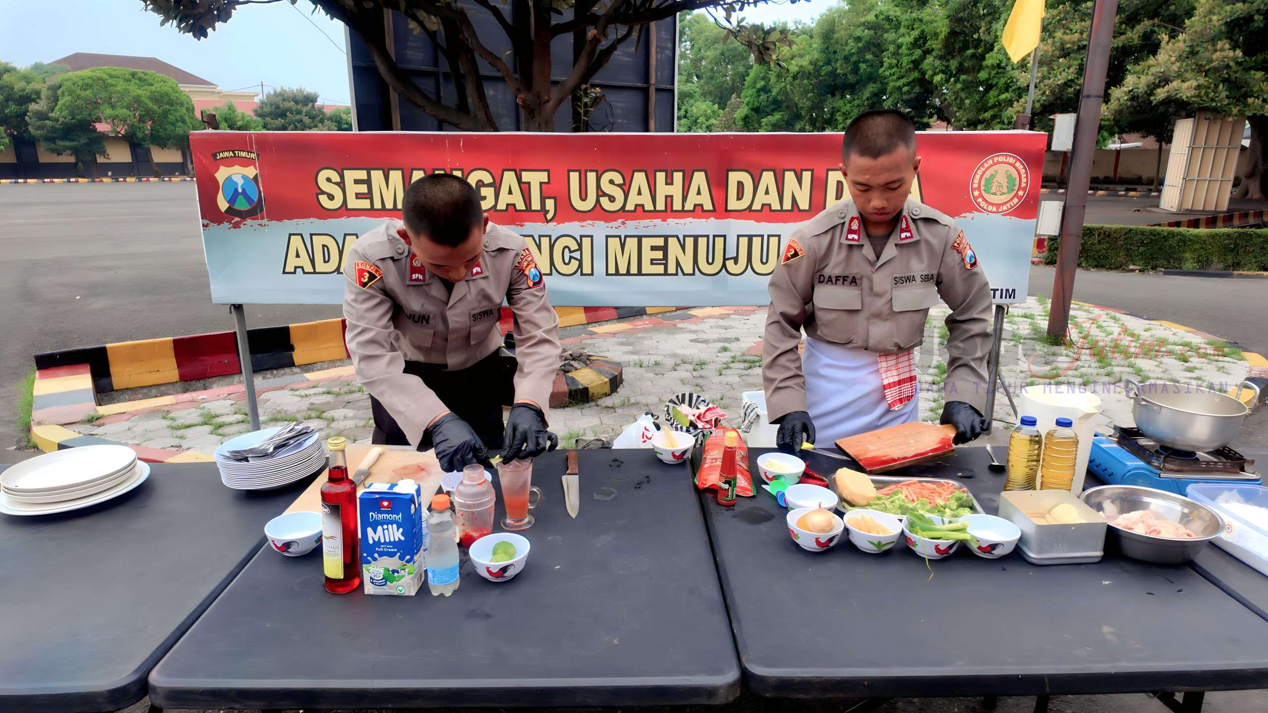 MOJOKERTO, Jogojatim.com – Dua siswa Pendidikan Pembentukan Bintara (Diktukba) Polri T.A. 2025 SPN Polda Jatim dari jalur seleksi Bintara Kompetensi Khusus (Bakomsus) Tata Boga, tampil memukau memamerkan potensi kuliner mereka melalui sesi demo memasak.
