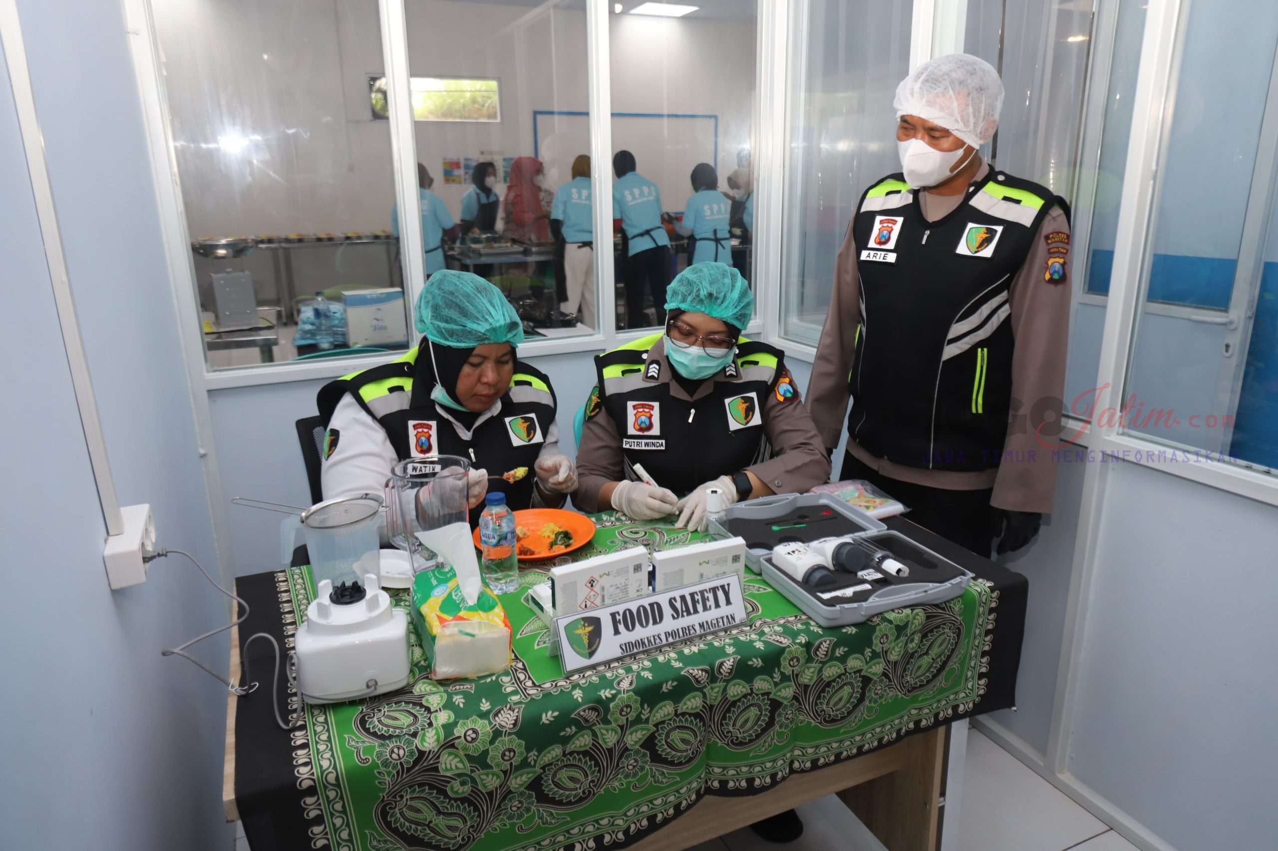 Dalam kegiatan food safety tersebut, tim Dokkes Polres Magetan Polda Jatim melakukan pemeriksaan secara menyeluruh terhadap bahan maupun makanan yang diolah di SPPG Polres Magetan 2 Yayasan Kemala Bhayangkari.