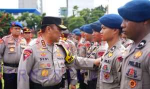 Mewakili Kapolres Gresik, AKBP Rovan Richard Mahenu, S.I.K., M.Si., Kabag SDM Polres Gresik, Kompol Syabain Rahmad Kusriyanto, S.H., M.Pd., M.M., memberikan pembekalan di Stadion Petrokimia Gresik.