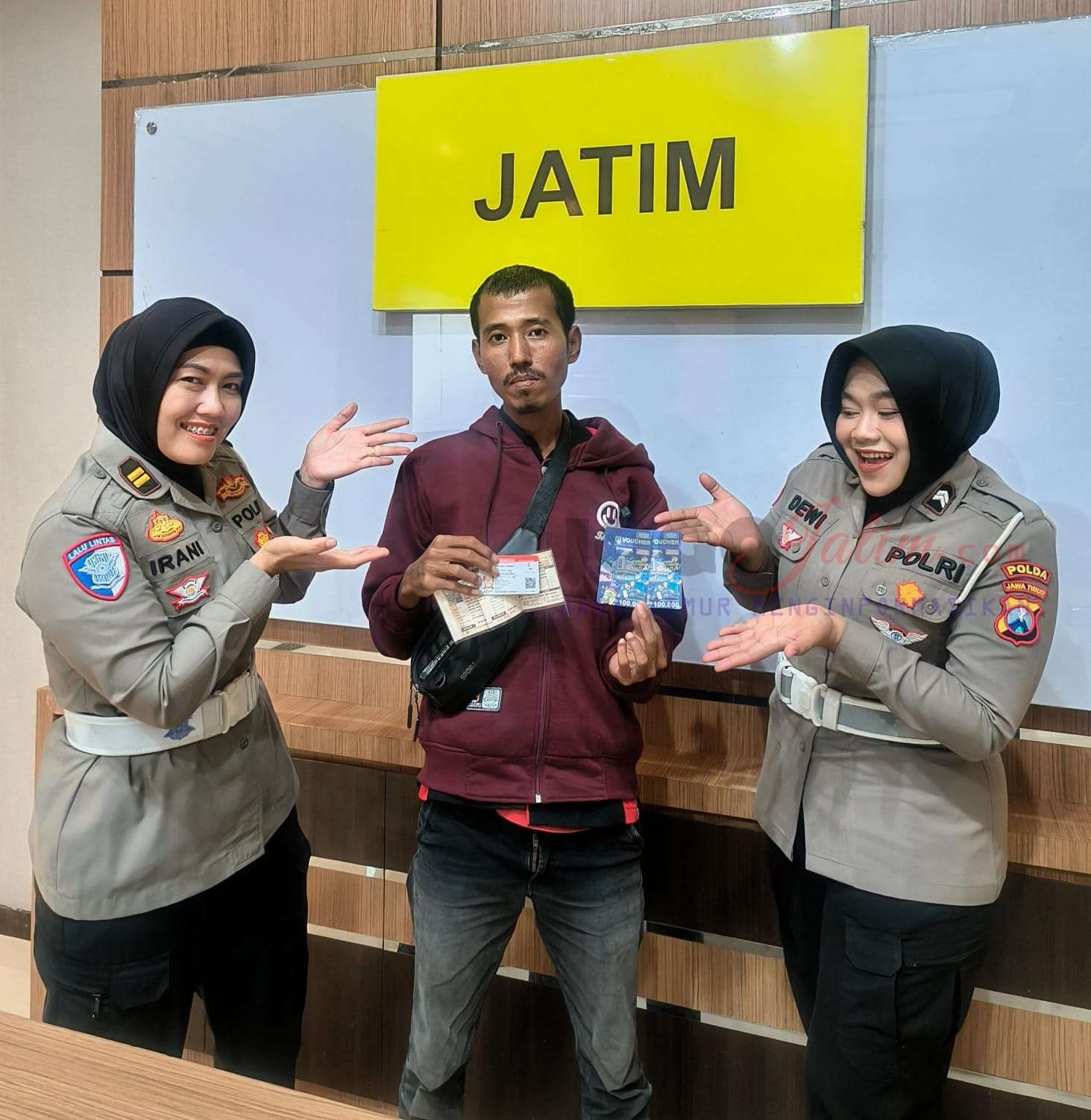 “Alhamdulillah saya dapat rezeki, terima kasih untuk jajaran Polantas Polda Jatim,” ucap Andio.