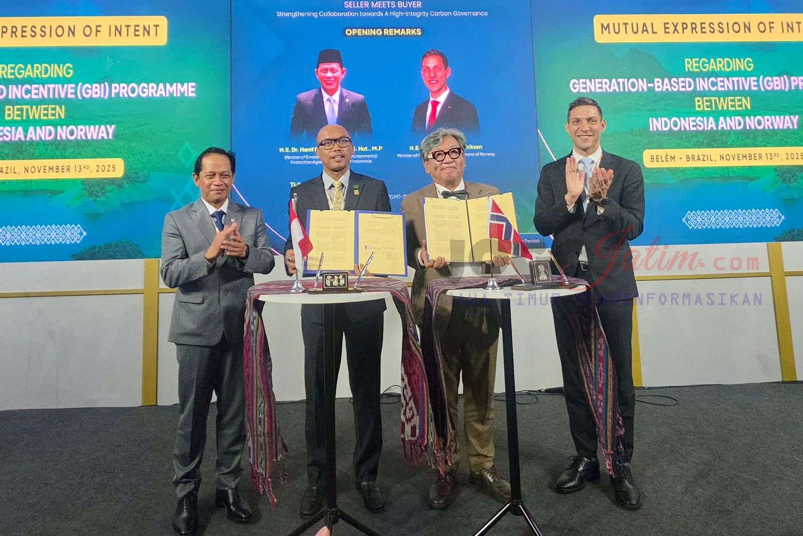 Belém, Joagojatim.com – 20 November 2025 – Pemerintah Indonesia melalui PT PLN (Persero) menandatangani _Mutual Expression of Intent Generation-Based Incentive Programme_ bersama Global Green Growth Institute (GGGI) di Paviliun Indonesia, Belém, Brazil dalam _Conference of the Parties_ ke-30 (COP30) pada Kamis (13/11). Penandatanganan dokumen tersebut merupakan tindak lanjut dari _bilateral agreement_ antara Indonesia dan Norwegia sebagai salah satu kerja sama transaksi karbon terbesar di bawah mekanisme Artikel 6 _Paris Agreement_ dengan potensi pengurangan emisi hingga 12 juta ton CO2e.