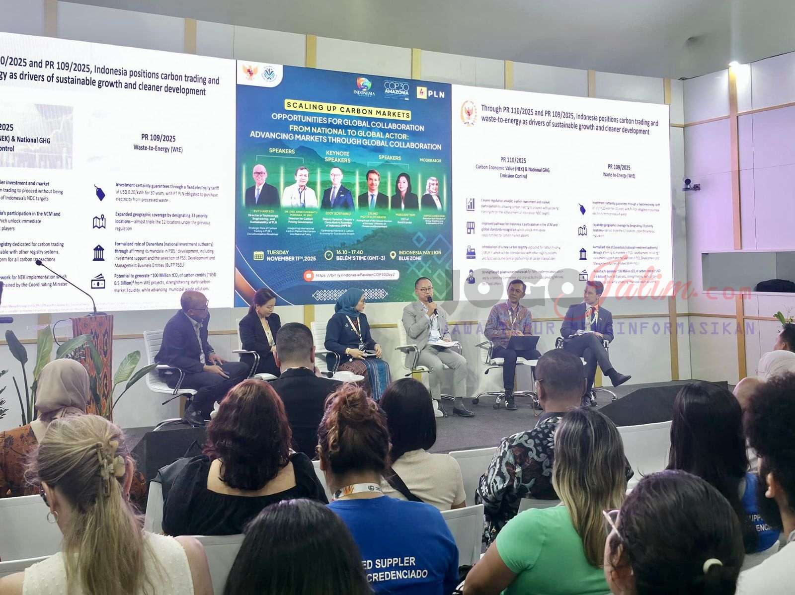 Belém, Jogojatim.com – 18 November 2025 – PT PLN (Persero) menegaskan perannya sebagai motor dekarbonisasi Indonesia dengan mendorong pengembangan pasar karbon nasional yang terintegrasi dengan standar global. Hal ini disampaikan dalam rangkaian diskusi panel bertajuk “Scalling-Up Carbon Markets: Opportunities for Global Collaboration” pada COP30 Belém, Brasil, di mana PLN memaparkan langkah konkret untuk mendorong integritas, transparansi, dan keterhubungan pasar karbon Indonesia dengan pasar global.