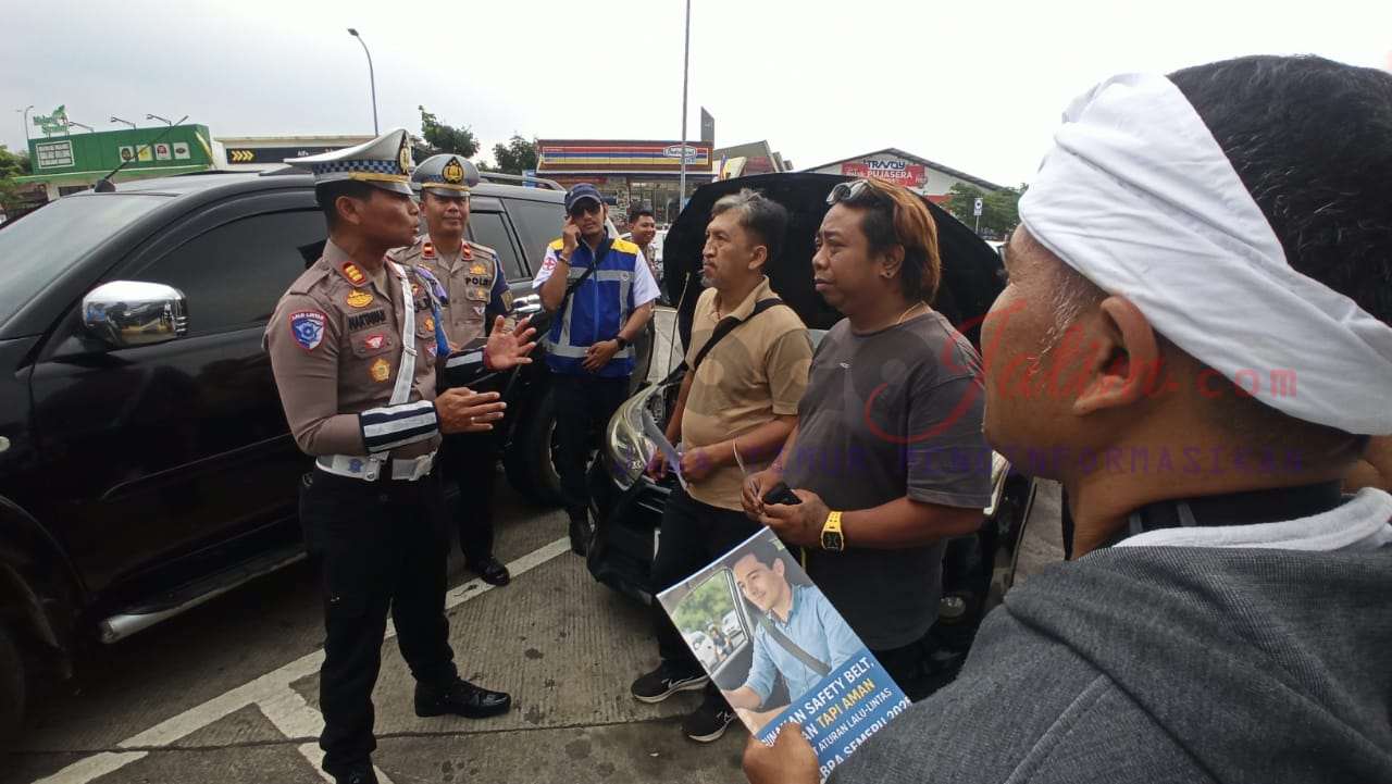 Pamflet berisi imbauan dan edukasi tertib berkendara itu dibagikan di rest area jalan Tol kepada pengendara yang sedang beristirahat.