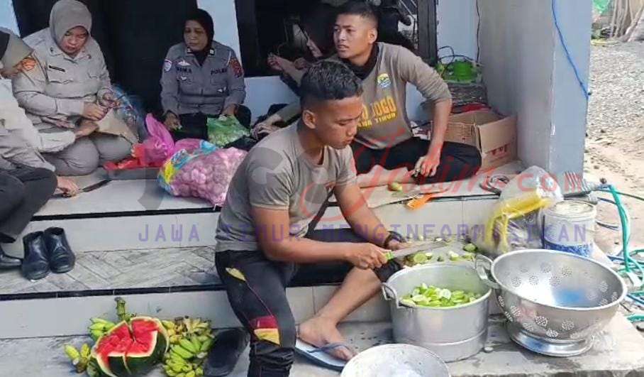 LUMAJANG, Jogojatim. com – Personel Polisi Wanita (Polwan) dan anggota Satbrimob Polda Jawa Timur menyediakan dapur umum bagi warga yang terdampak erupsi Gunung Semeru di Desa Supiturang, Pronojiwo, Kabupaten Lumajang.