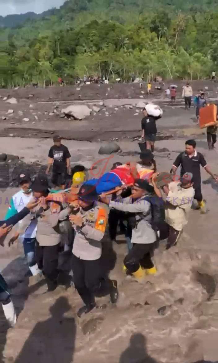 Sebanyak 90 personel Polri diterjunkan ke lokasi untuk operasi kemanusiaan yang dipimpin langsung oleh Kapolres Lumajang, AKBP Alex Sandy Siregar, S.I.K., S.H., M.H. Mereka bekerja dalam kondisi medan yang berat, dengan lumpur tebal, batu, dan sisa material vulkanik yang menghalangi akses. Polri dan masyarakat bekerja bahu-membahu mengamankan harta benda, banyak yang harus dipikul secara manual karena jalan licin dan sulit dilalui. Untuk barang-barang berukuran besar, kendaraan dinas Polri digunakan dengan menerobos genangan lahar dingin dan material letusan agar harta benda warga dapat diselamatkan sebelum kondisi memburuk.