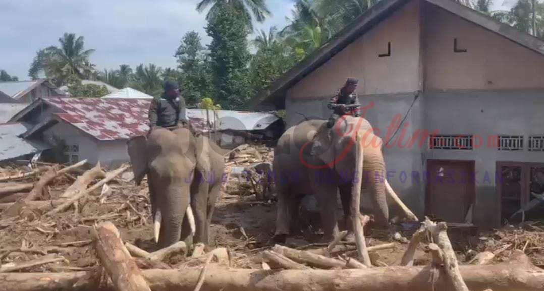 “Empat gajah yang kita datangkan bersama BKSDA Aceh hari ini sudah berada di lokasi. Mereka langsung kita kerahkan untuk menarik kayu-kayu besar serta material berat lainnya yang menumpuk akibat banjir,” ujar Iptu Fauzi.