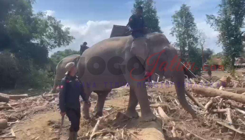 Meureudu, Jogojatim. com – Empat ekor gajah milik Balai Konservasi Sumber Daya Alam (BKSDA) Aceh telah tiba lengkap di Kabupaten Pidie Jaya untuk membantu proses pembersihan material pascabencana banjir. Hewan-hewan tersebut langsung dikerahkan untuk menarik timbunan kayu dan material berat yang terseret arus banjir beberapa waktu lalu.