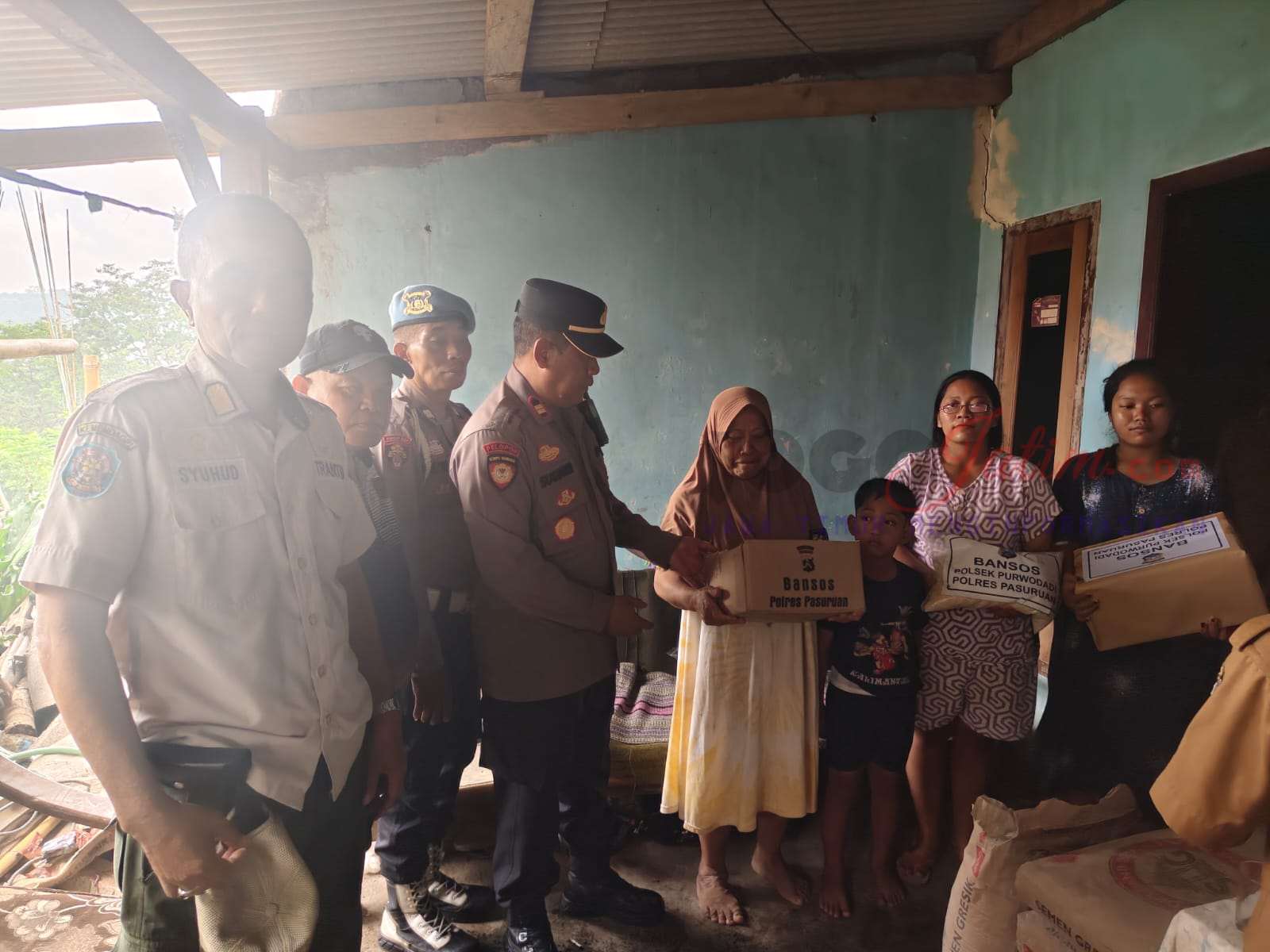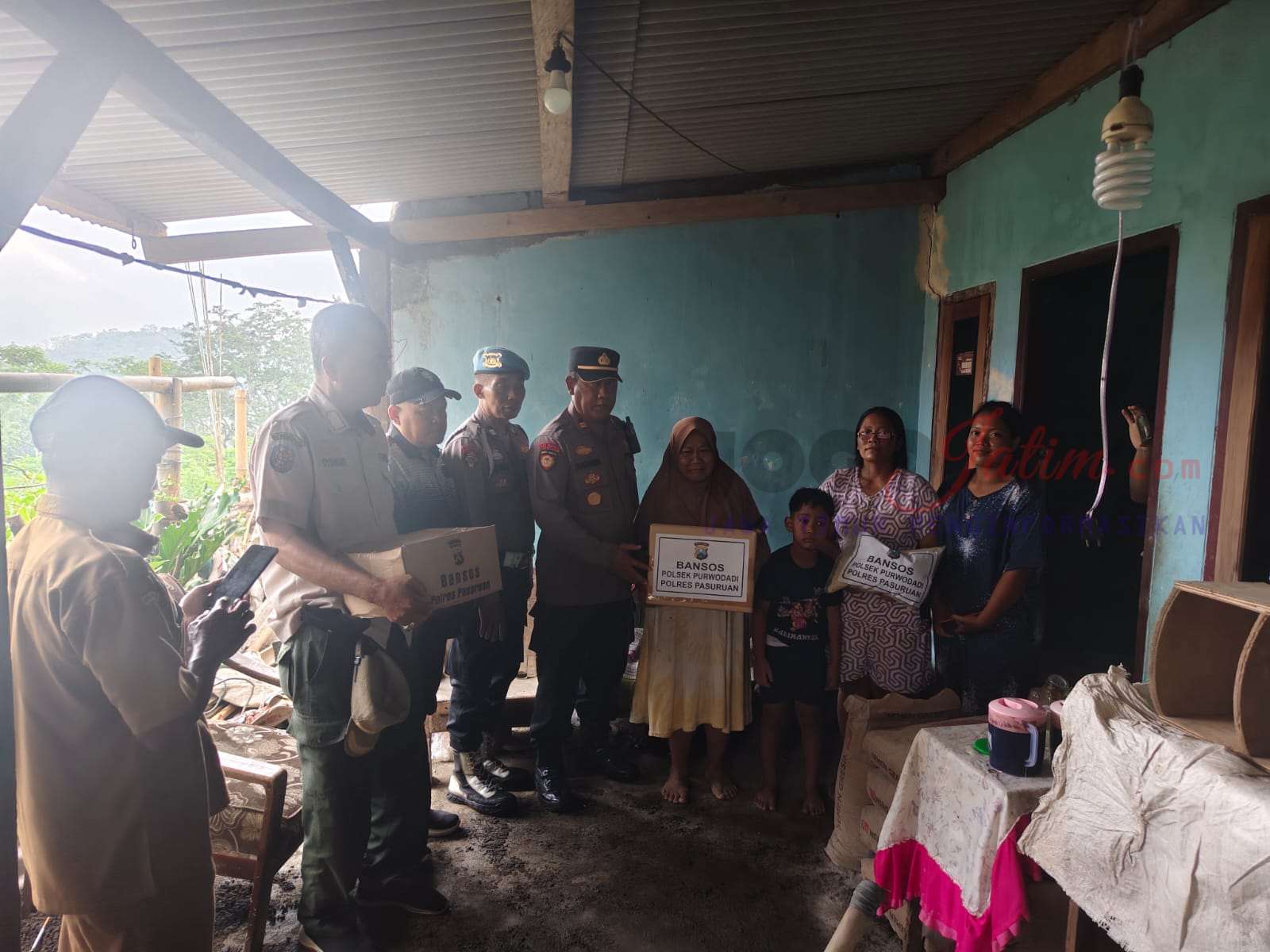 PASURUAN, Jogojatim. com — Polres Pasuruan melalui Polsek Purwodadi menyalurkan bantuan sosial (bansos) kepada warga Dusun Sempuh, Desa Cowek, Kecamatan Purwodadi, yang rumahnya rusak akibat sambaran petir. Penyaluran bantuan dilakukan pada Senin (15/12/2025).