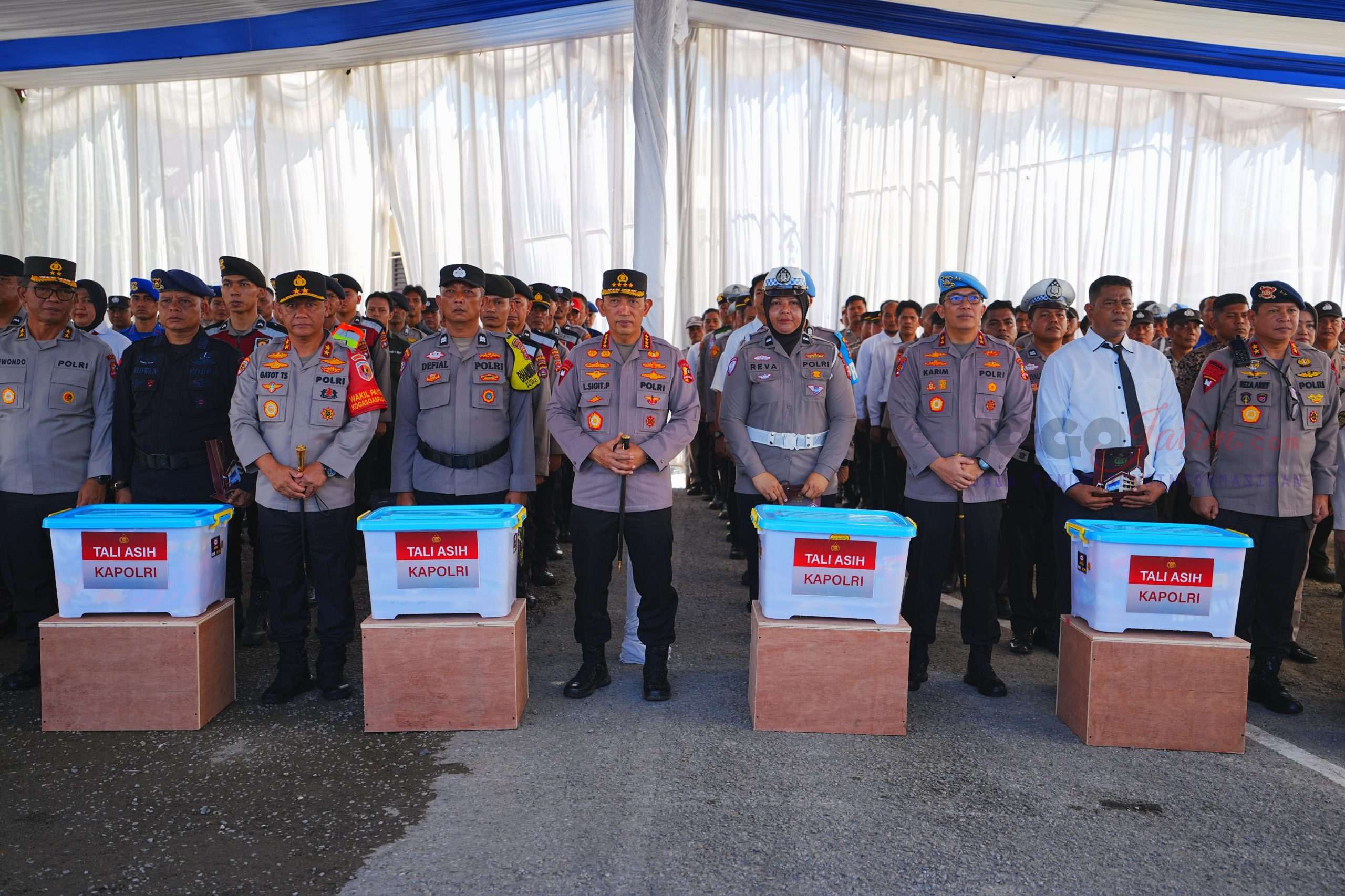 Dalam kegiatan tersebut, Kapolri menyerahkan 170 paket bantuan kepada personel terdampak. Setiap paket berisi kebutuhan pokok dan perlengkapan harian, antara lain beras, mie instan, gula, minyak goreng, sarden, susu, biskuit, sosis, pakaian dalam, sarung, handuk, selimut, perlengkapan mandi, serta obat-obatan ringan.