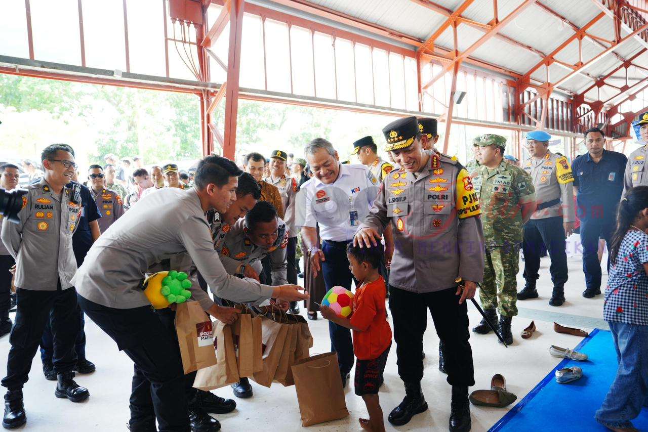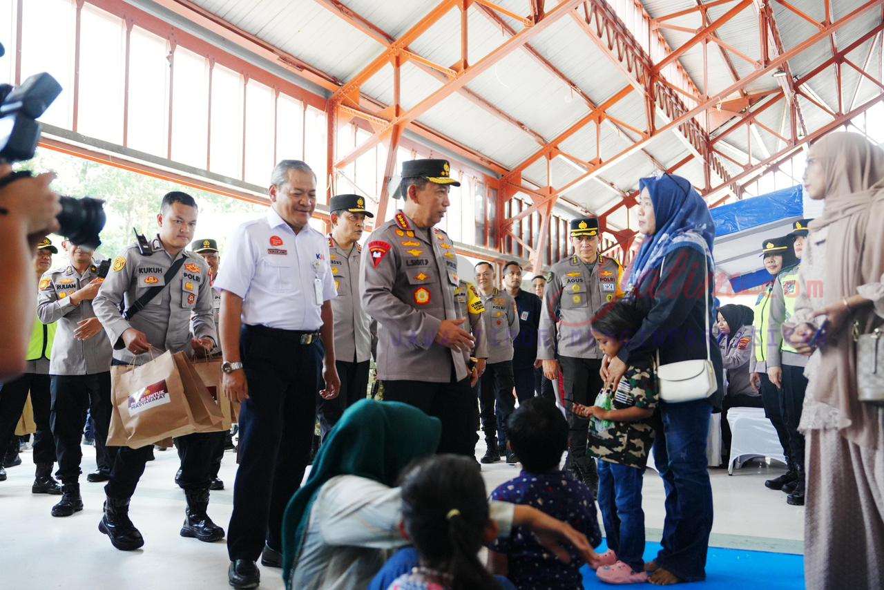 Kapolri juga menyempatkan diri menyapa para penumpang di ruang tunggu keberangkatan serta membagikan goodie bag sebagai bentuk perhatian dan dukungan kepada masyarakat yang akan melakukan perjalanan. Selain itu, Kapolri menyerahkan paket bantuan sosial secara simbolis kepada perwakilan petugas lintas sektor, meliputi unsur TNI, Polri, Dinas Perhubungan, tenaga kesehatan KAI, dan Polsuska.