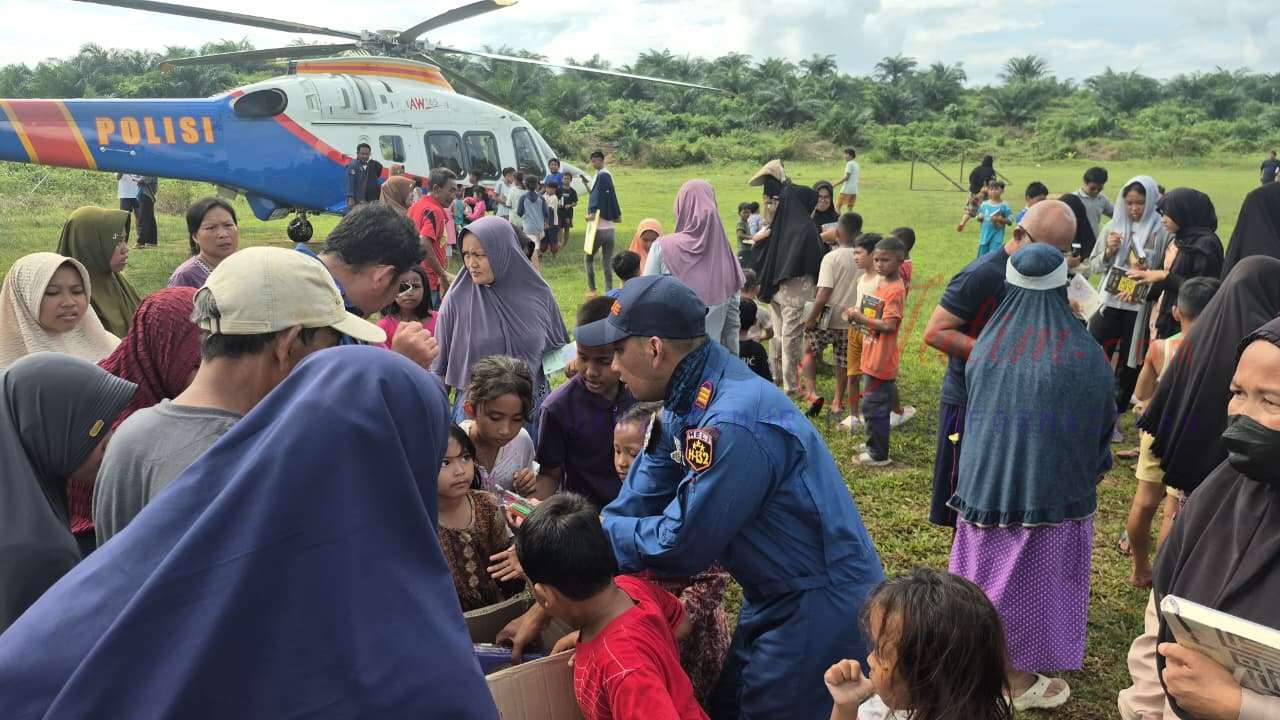 Pembagian Al-Qur’an dipimpin oleh Kompol Eko bersama kru helikopter. Bantuan tersebut merupakan amanah dari salah satu anggota Polda Sumatera Utara yang tidak ingin disebutkan identitasnya, untuk disalurkan kepada masyarakat Aceh Tamiang, khususnya anak-anak.
