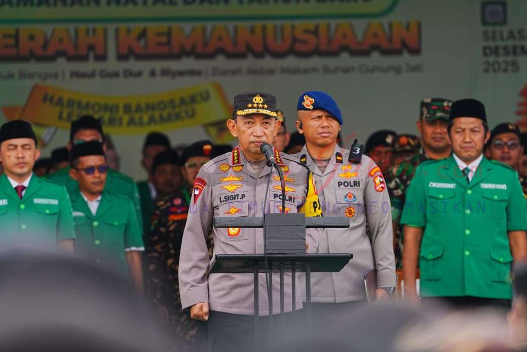 Kapolri menegaskan bahwa pengamanan akhir tahun tidak hanya dihadapkan pada tantangan keamanan konvensional, tetapi juga risiko cuaca ekstrem dan bencana alam yang berpotensi terjadi di sejumlah wilayah Indonesia. Oleh karena itu, ia meminta seluruh elemen pengamanan, termasuk Banser, untuk meningkatkan kesiapsiagaan dan kemampuan tanggap bencana.