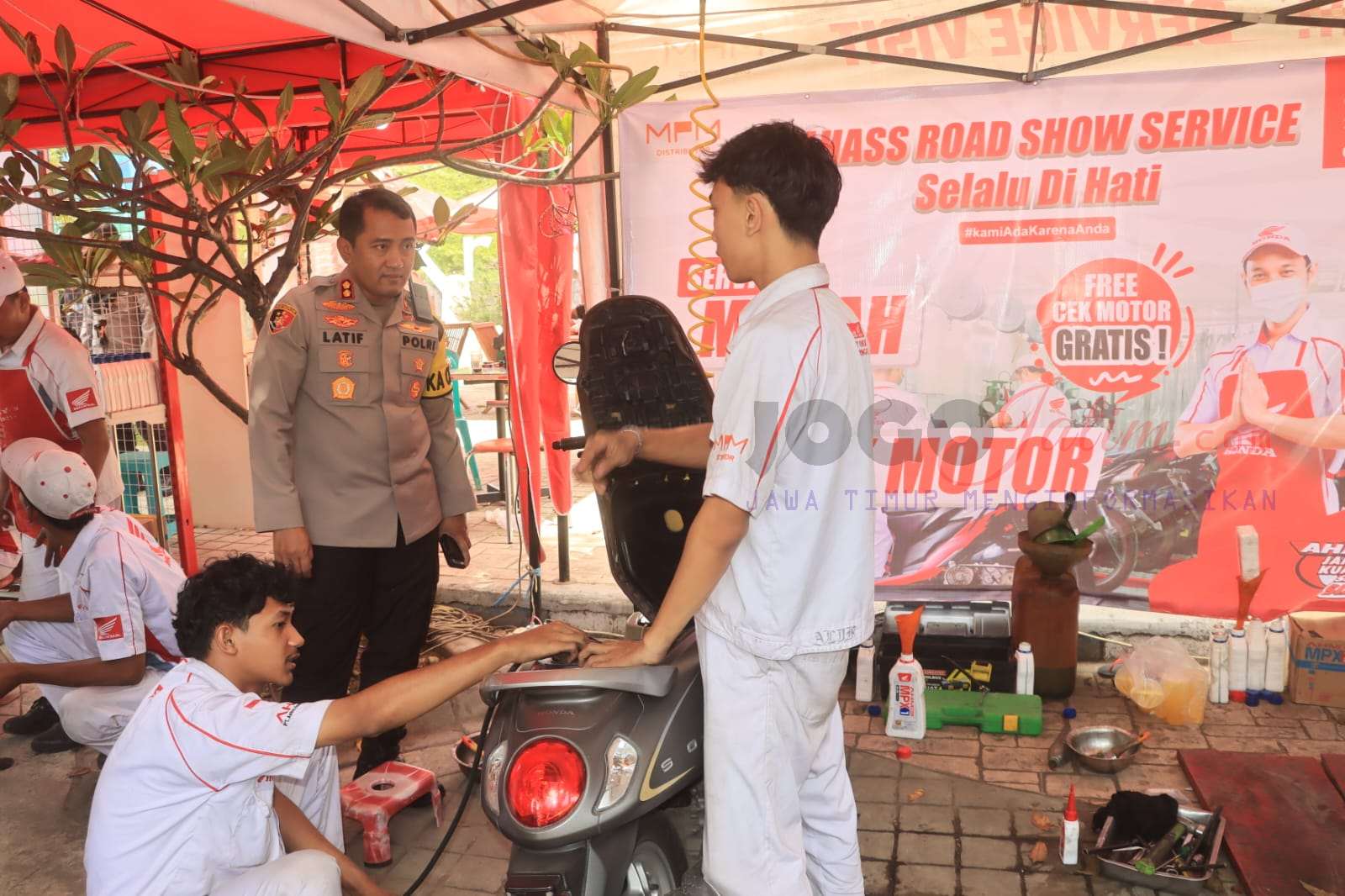 “Untuk layanan servis sepeda motor gratis dengan ketentuan tertentu, seperti pajak kendaraan aktif, serta kuota maksimal 20 unit sepeda motor per hari,” jelas AKBP Latif.
