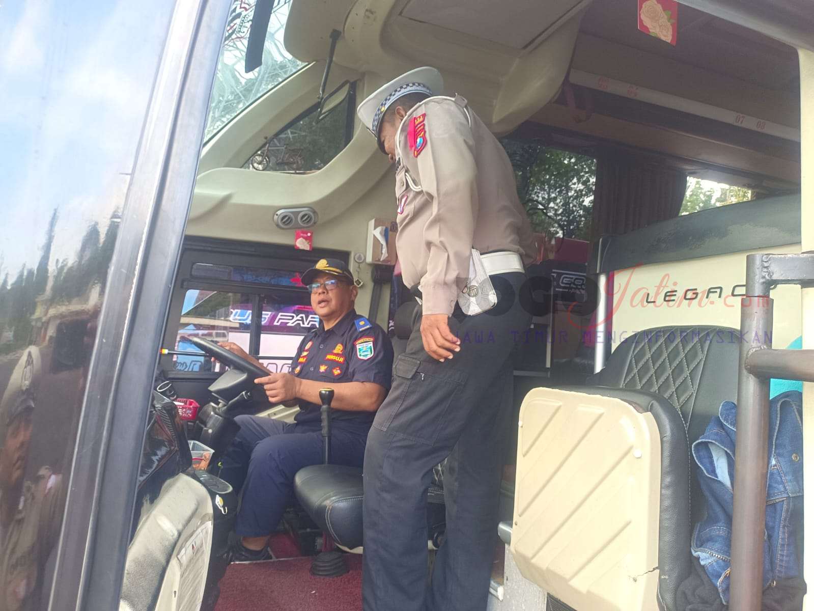 Pemeriksaan difokuskan pada kelengkapan administrasi kendaraan, uji laik jalan, serta kondisi teknis kendaraan meliputi sistem pengereman, kondisi ban, fungsi pintu darurat, dan perlengkapan keselamatan lainnya.