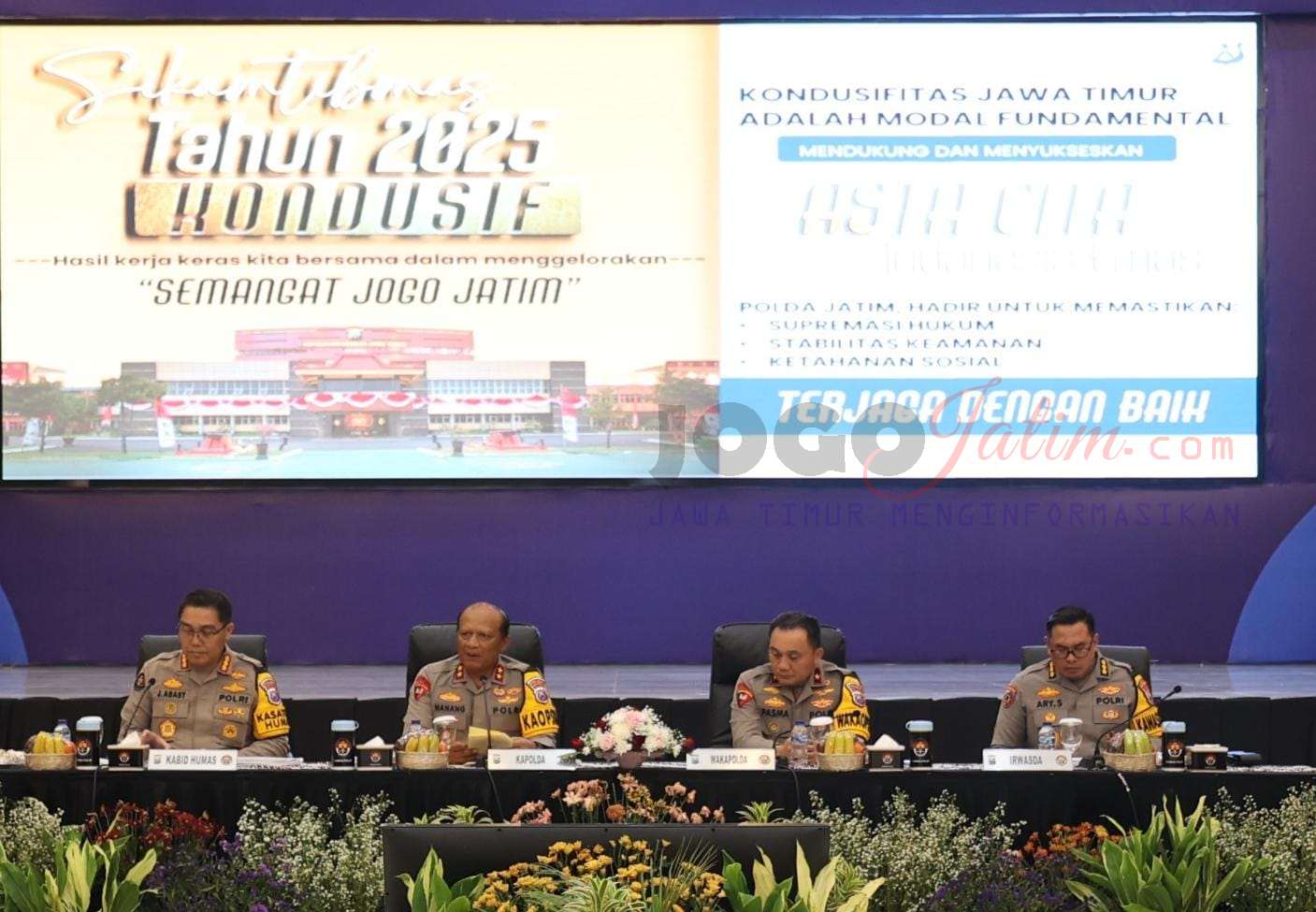 “Situasi Kamtibmas sepanjang tahun 2025 di Jawa Timur relatif kondusif,” ungkap Irjen Pol Nanang.