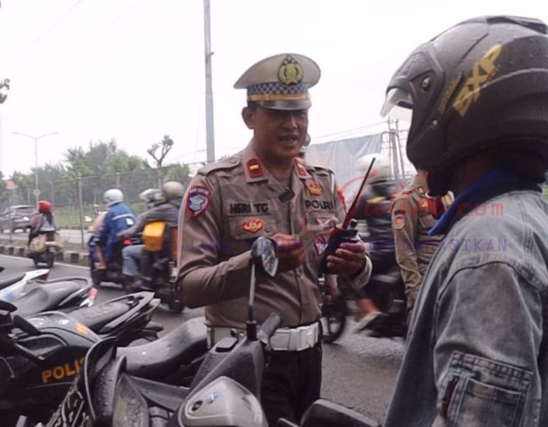 Selama operasi berlangsung, petugas melakukan pemeriksaan intensif terhadap kelengkapan surat-surat kendaraan dan barang bawaan pengendara roda dua.