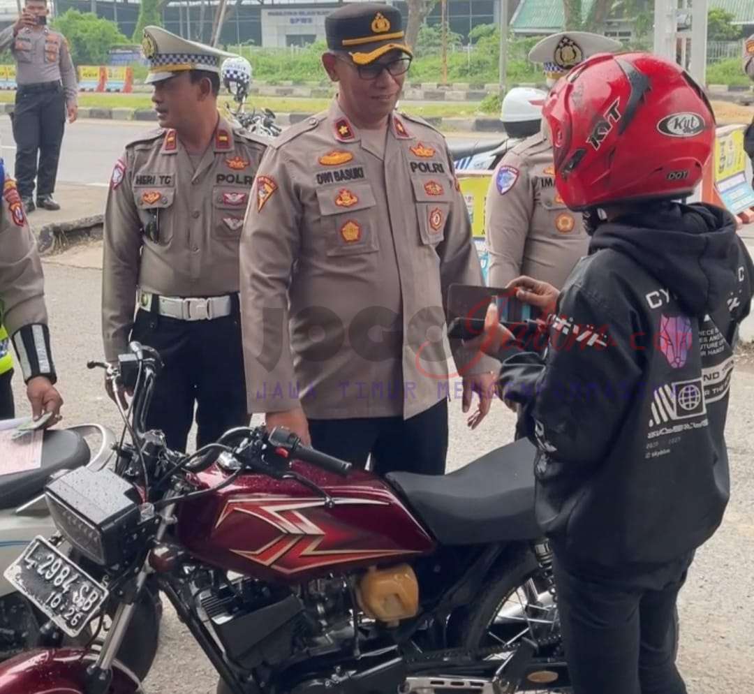 Kegiatan yang berpusat di depan Pos Polisi Suramadu, Jalan Tambak Wedi Baru, Kedung Cowek, Kecamatan Bulak ini menyasar kendaraan roda dua (R2) yang melintas dari arah Surabaya menuju Pulau Madura.