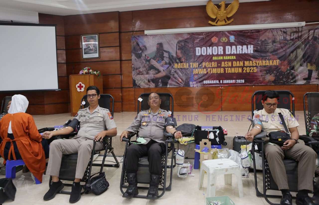 SURABAYA, Jogojatim. com – Panitia Natal TNI dan Polri menggelar kegiatan Bakti Sosial donor darah yang dilaksanakan di Kantor PMI Cabang Surabaya, Jalan Embong Ploso No. 7–15, Surabaya, Kamis (8/1/2026).