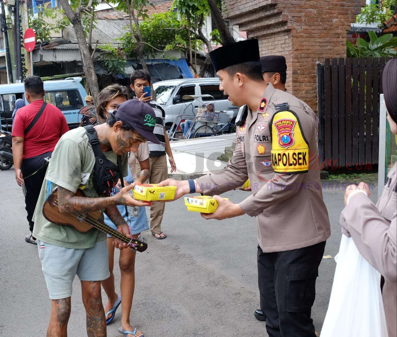 Selain berbagi makanan, Kapolsek Taman bersama anggota juga menyampaikan pesan-pesan kamtibmas secara singkat.