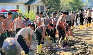 Dipimpin oleh Danton Penugasan Iptu Deny Lius Tarigan, S.H., personel Brimob bekerja secara bertahap dengan mengerahkan peralatan manual dan mesin, mulai dari cangkul, sekop, beko sorong, mesin penyedot air, hingga chainsaw, guna mempercepat proses pembersihan dan perbaikan.
