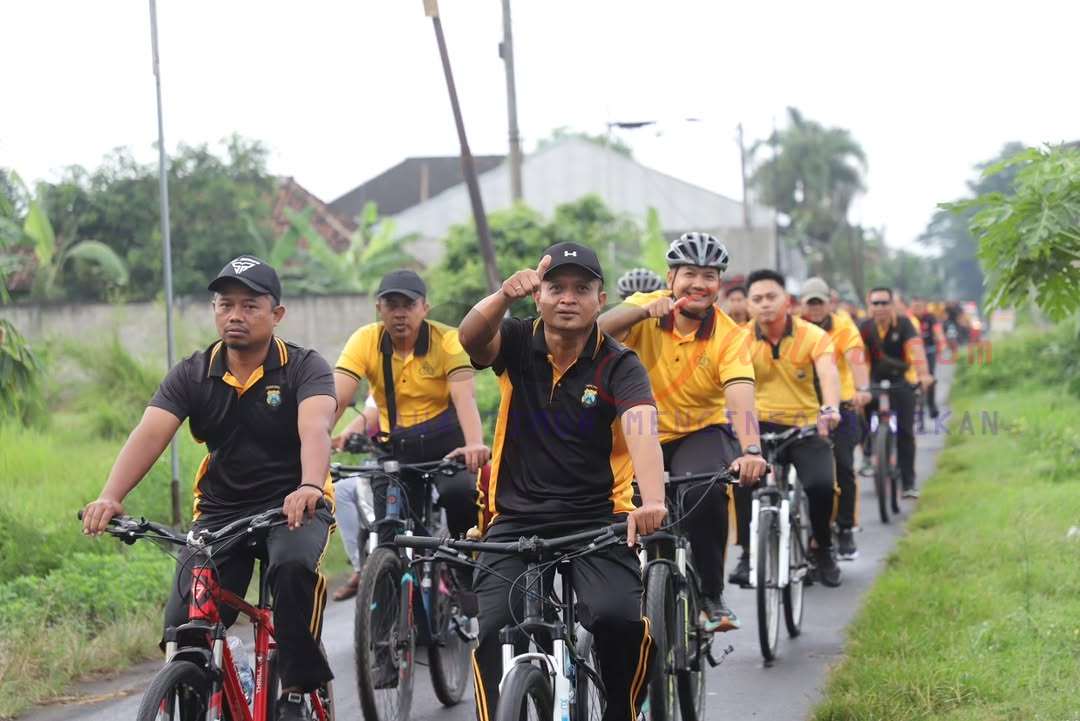 Ratusan personel Polri dan ASN Polres Kediri Polda Jatim mengikuti kegiatan olahraga bersepeda bersama Kapolres Kediri AKBP Bramastyo Priaji.