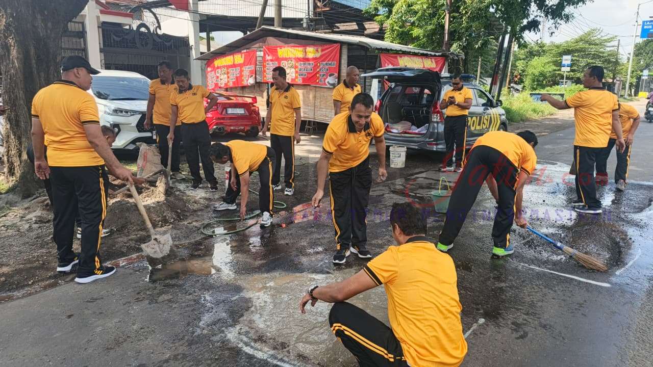 Operasi Keselamatan Semeru 2026 Polresta Sidoarjo Tambal Jalan Berlubang