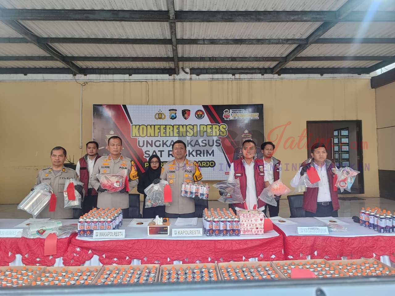SIDOARJO, Jogojatim. com – Satreskrim Polresta Sidoarjo Polda Jatim berhasil membongkar kasus pengoplosan LPG 3 kilogram bersubsidi yang dipindahkan ke tabung gas portabel ukuran 235 gram, untuk diperjualbelikan ke masyarakat.