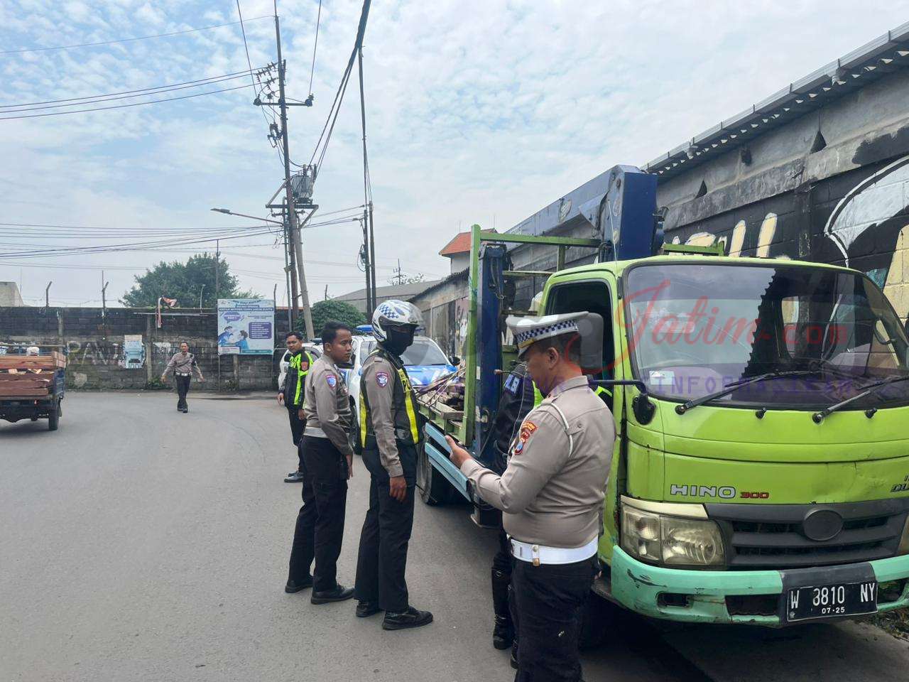 Tak butuh waktu lama, Unit Turjawali dan Unit Urai Satlantas Polres Pelabuhan Tanjungperak mencurigai sebuah truk yang terparkir di pinggir jalan di wilayah Semampir.