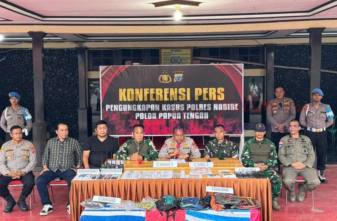 NABIRE, Jogojatim. com — Aparat gabungan TNI-Polri menggelar konferensi pers terkait perkembangan upaya penegakan hukum terhadap target daftar pencarian orang (DPO) kelompok kriminal bersenjata (KKB) di Kabupaten Nabire yang digelar di Polres Nabire pada Senin (2/3/2026) pukul 16.00 WIT.