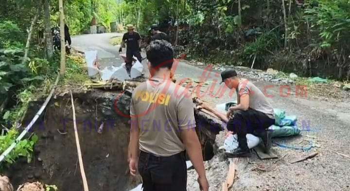 “Kami bersama warga melaksanakan kerja bakti memasang bronjong sebagai langkah penanganan darurat. Ini untuk memperkuat tebing dan menahan pergerakan tanah agar tidak terjadi longsor susulan,” ujar Iptu Sukirno.