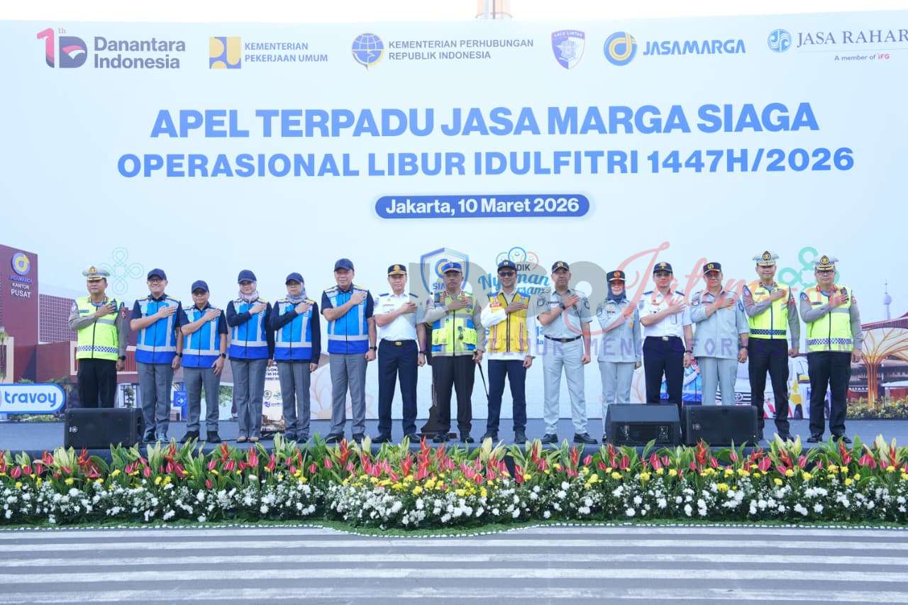 Jakarta, Jogojatim. com – Bentuk sinergi dan kolaborasi lintas sektoral, Kepala Korps Lalu Lintas (Kakorlantas) Polri Irjen Pol Drs. Agus Suryonugroho, S.H., M.Hum., menghadiri Apel Terpadu Jasa Marga Siaga Operasional Libur Hari Raya Idul Fitri 1447 H/2026 di TMII, Selasa (10/3). Apel ini menjadi bagian dari persiapan menghadapi arus mudik dan balik dalam rangka pelaksanaan Operasi Ketupat 2026.