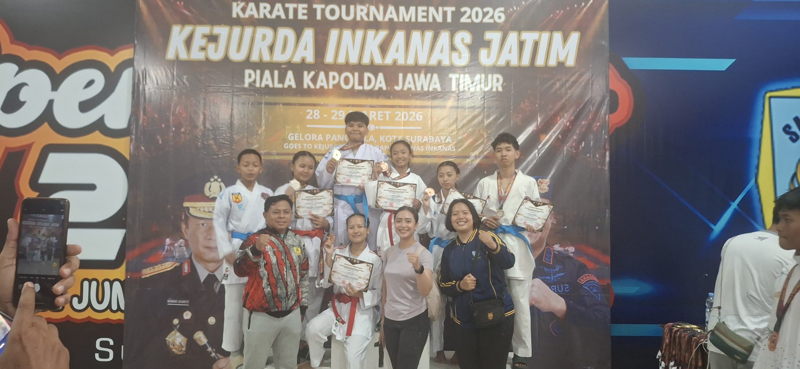 PASURUAN, Jogojatim. com – Kontingen karate Institut Karate-Do Nasional (Inkanas) binaan Polres Pasuruan berhasil memborong enam medali dalam Kejuaraan Karate Piala Kapolda Jawa Timur 2026 yang digelar di Surabaya pada Sabtu (28/3/2026).
