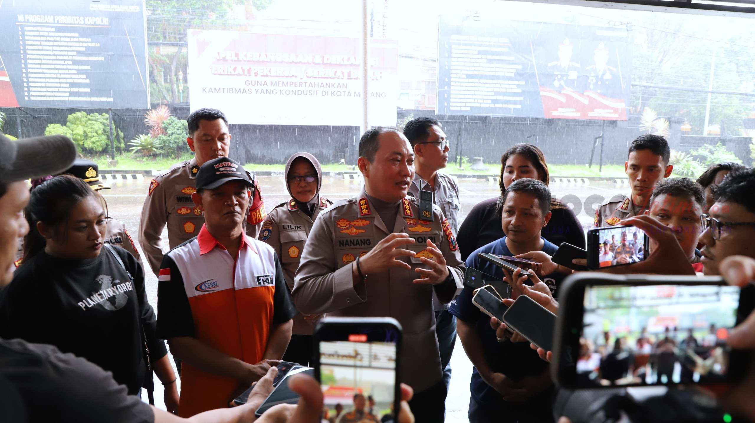 “Kami akan terus bersinergi dengan seluruh serikat buruh se-Kota Malang dalam apel kebangsaan ini. Intinya, kita bersama-sama mempertahankan situasi Kamtibmas yang aman dan kondusif di Kota Malang,” ujar Kombes Pol Nanang.